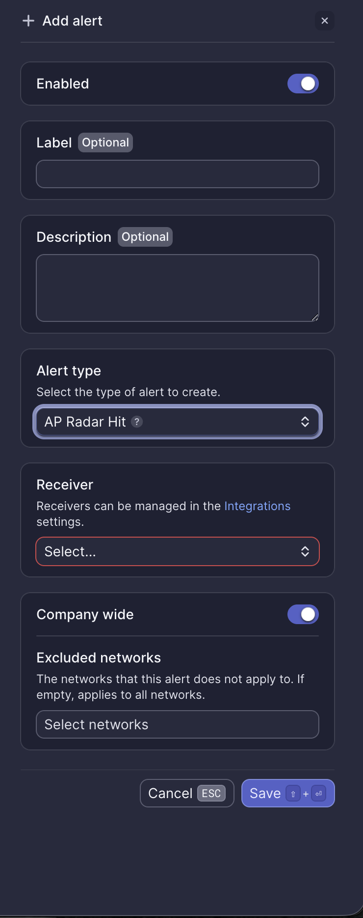 | Alert type | Yes | Select "AP Radar Hit" |