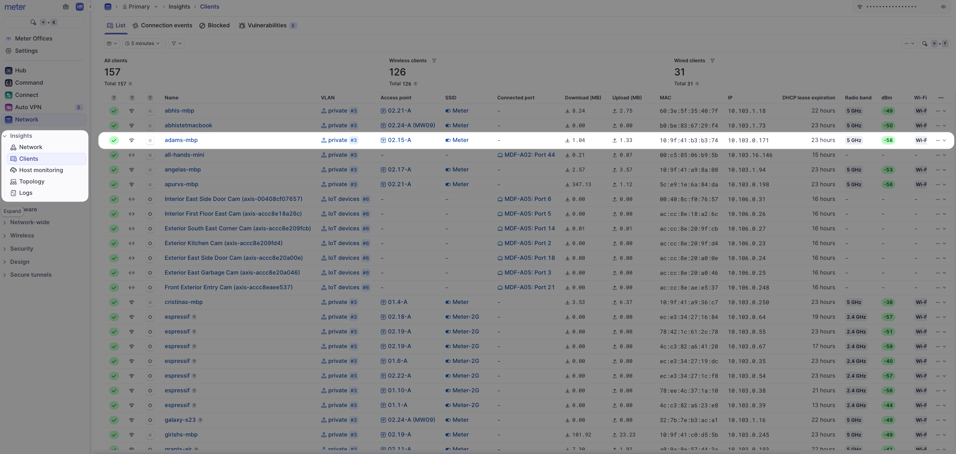 If you have any questions about the Network Insights or need further assistance, feel free to contact Meter Support at support@meter.com or submit a ticket on the Meter Dashboard.
