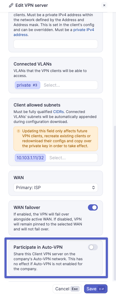 - Ensure that 'Participate in Auto-VPN' is enabled in the Client VPN server settings.