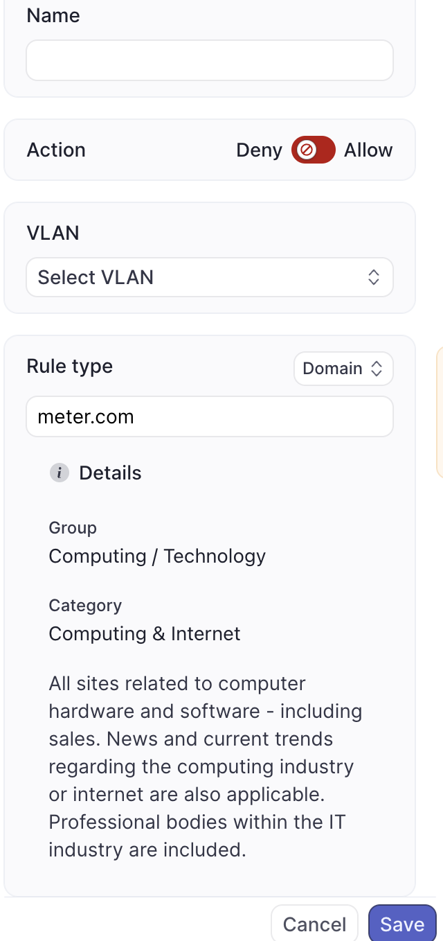 In certain cases, domains or applications may be miscategorized and denied when that is not the intent. If you come across one of these, please report it to Meter support so we can work on correcting the categorization.