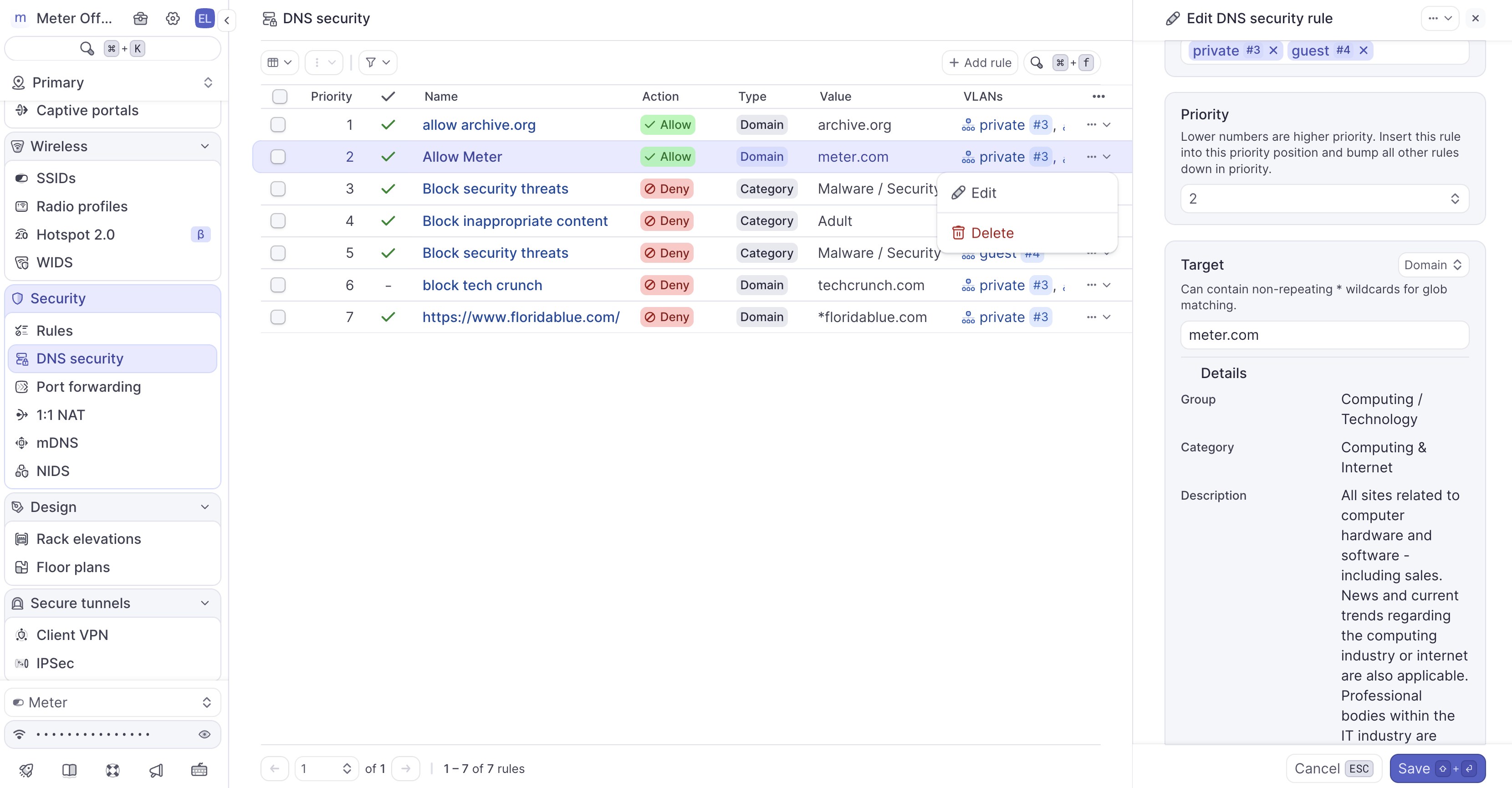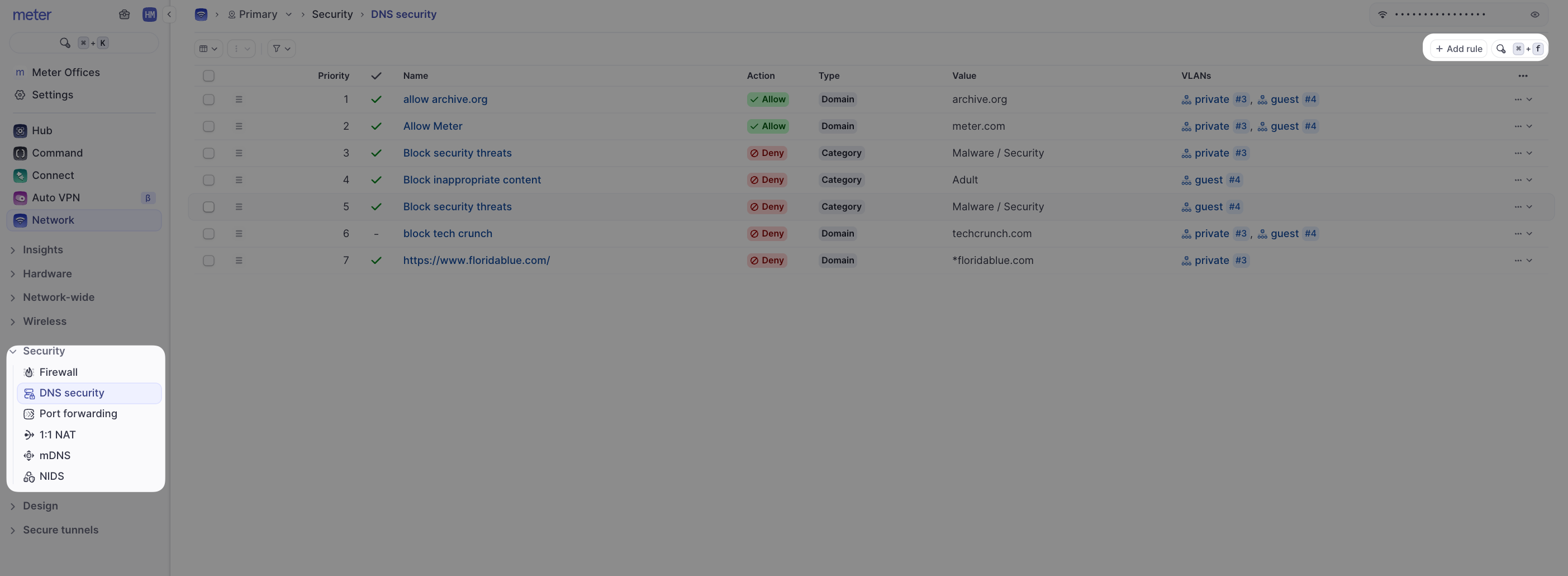 If you have any questions about DNS Security or need further assistance, feel free to contact Meter Support at support@meter.com or submit a ticket at meter.com/support.