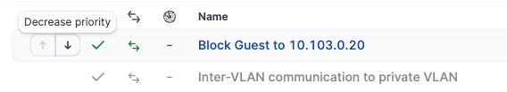 With this list expanded - you can see the Deny rule we created to block traffic from the guest network to 10.103.0.20 would be read first, blocking this traffic before reaching the Allow rule.