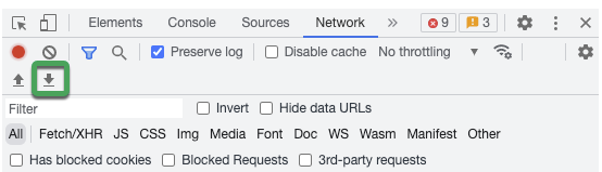 - Reproduce the issue while the network requests are recorded.