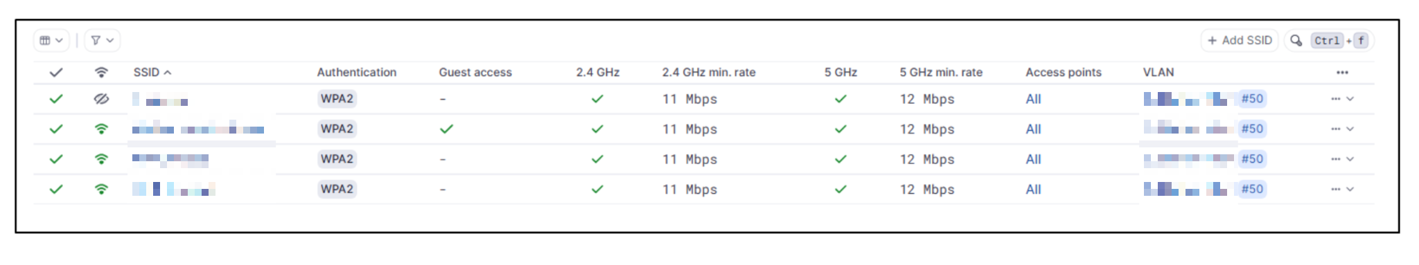 | SSID | VLAN |